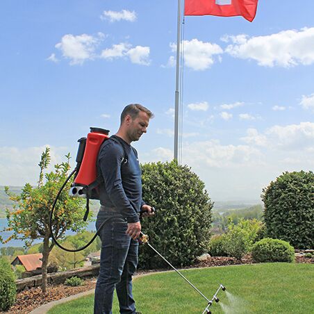 La rampe d'arrosage permet de traiter de grandes surfaces en très peu de temps. Les buses possèdent un tamis filtrant intégré.