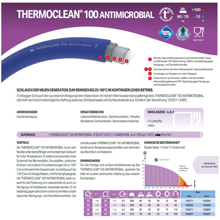 19mm ID, max. 15bar/ 100°C (résistant aux graisses animales), rouleau de 40m
