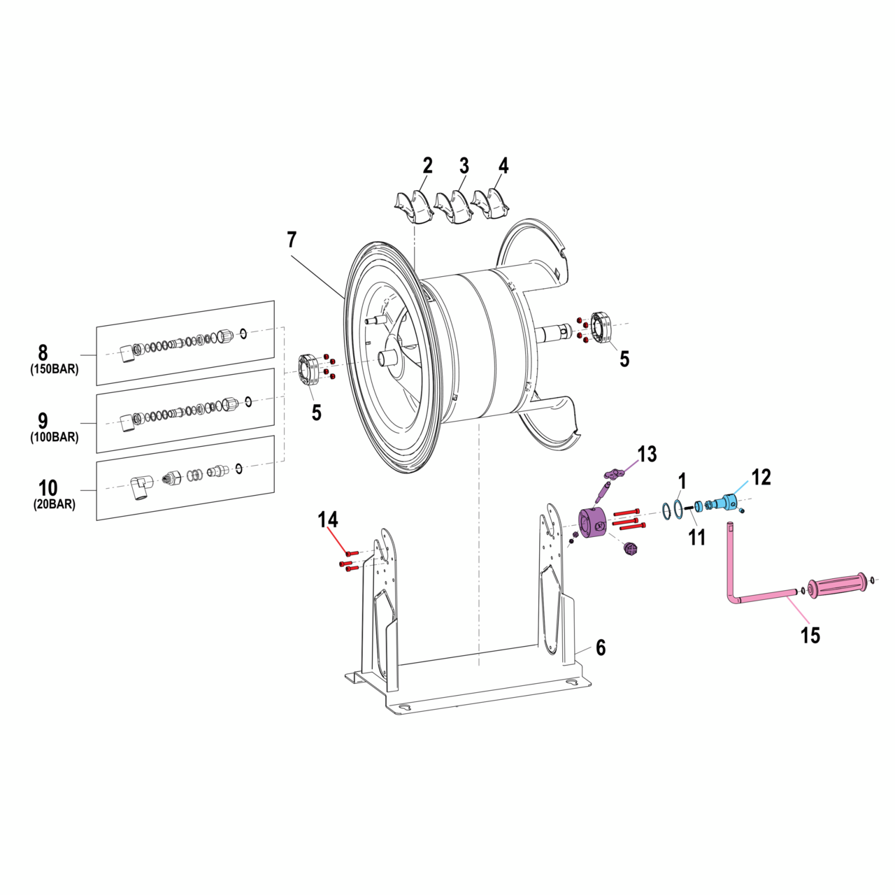 • Système de sécurité à manivelle pour que la manivelle ne tourne pas lorsque le tuyau est retiré.