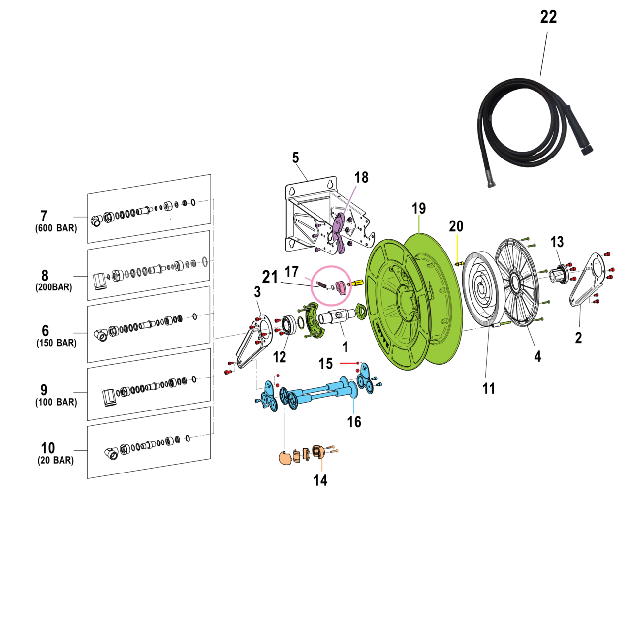 • Raccordements : Entrée (joint tournant en acier inoxydable) : 22 x 1,5 FE - Sortie (tuyau) : 22 x 1,5 FI Écrou-raccord