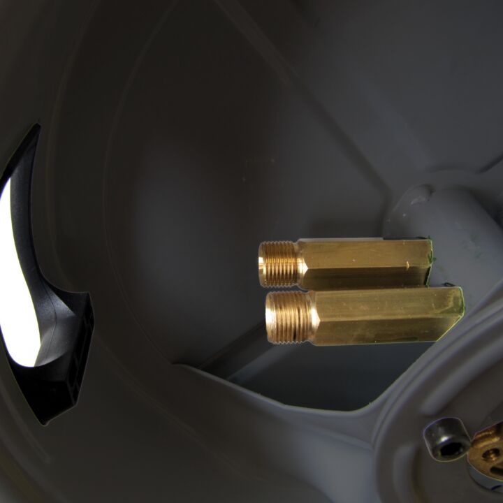 • Joint pivotante en acier inoxydable 1.4401, 2 raccords 3/8" int. BSP, joint viton, max. 130°C (tenir compte de la température max. du tuyau)