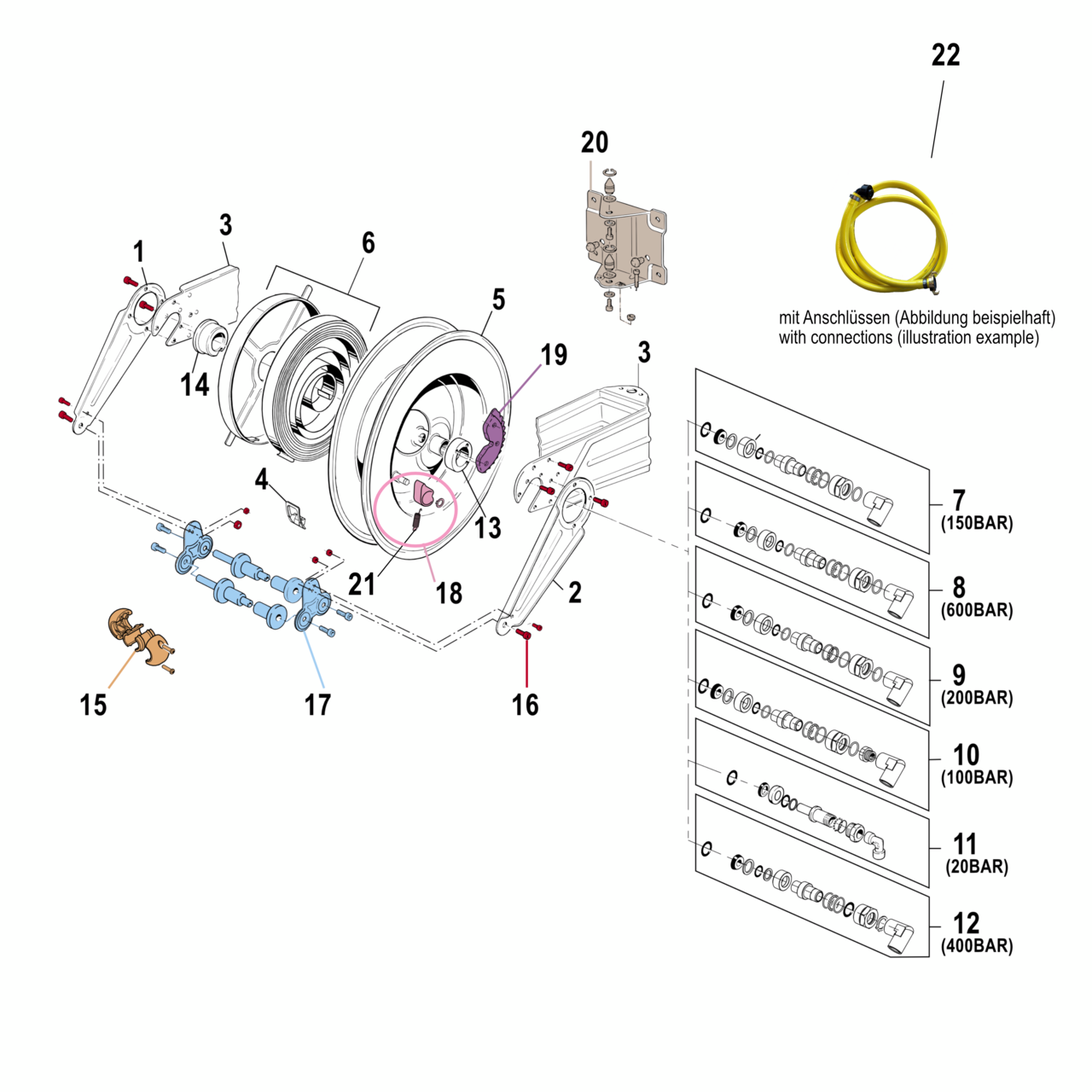 • Raccordements : Entrée (joint tournant) : Raccord rapide MS, compatible avec le système Geka, Sortie (tuyau) : Raccord rapide MS, compatible système Geka