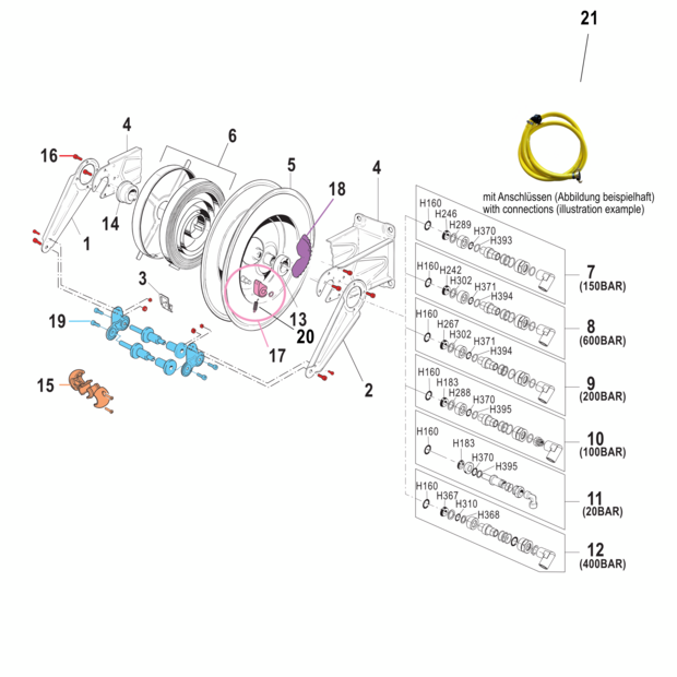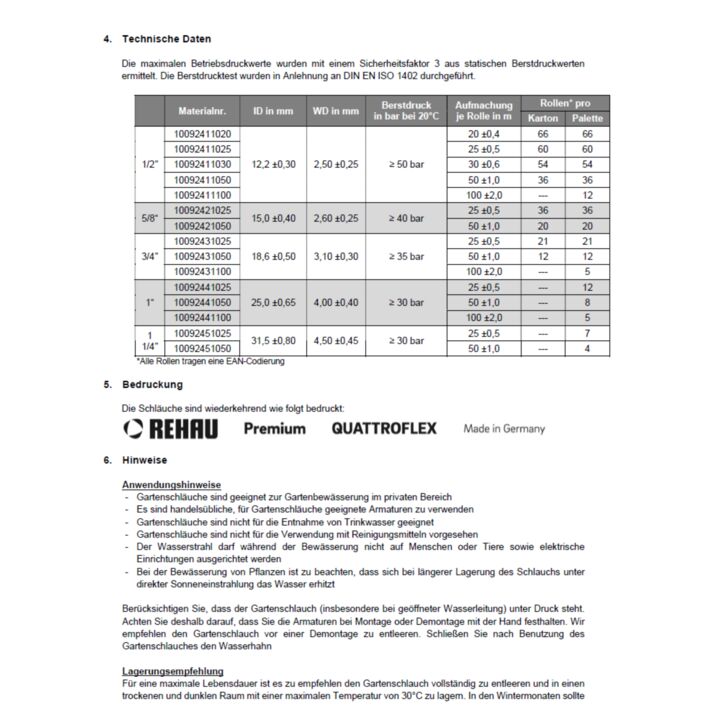 • Raccordements : Entrée (joint tournant) : Raccord rapide MS, compatible avec le système Geka, Sortie (tuyau) : Raccord rapide MS, compatible système Geka