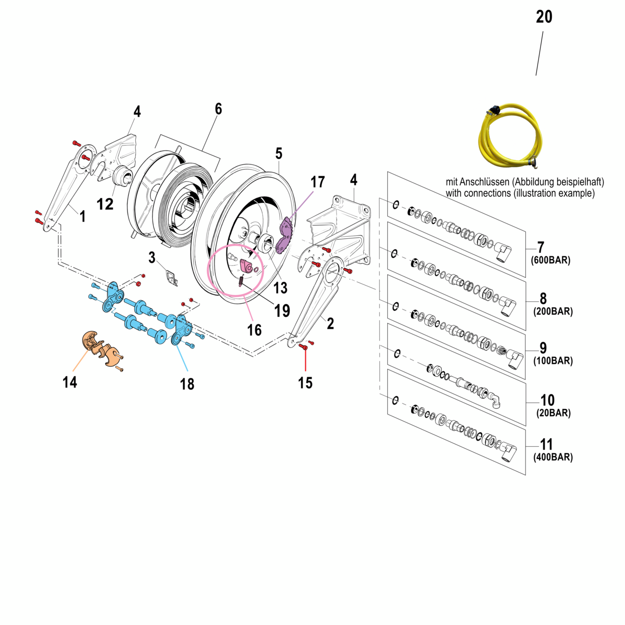 • Raccordements : Entrée (joint tournant) : Raccord rapide MS, compatible avec le système Geka, Sortie (tuyau) : Raccord rapide MS, compatible système Geka