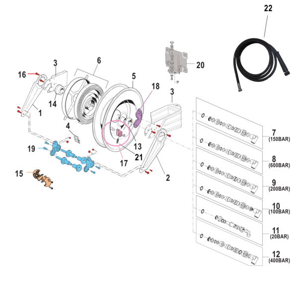 • tuyau haute pression 2SC bleu, résistant à l'abrasion