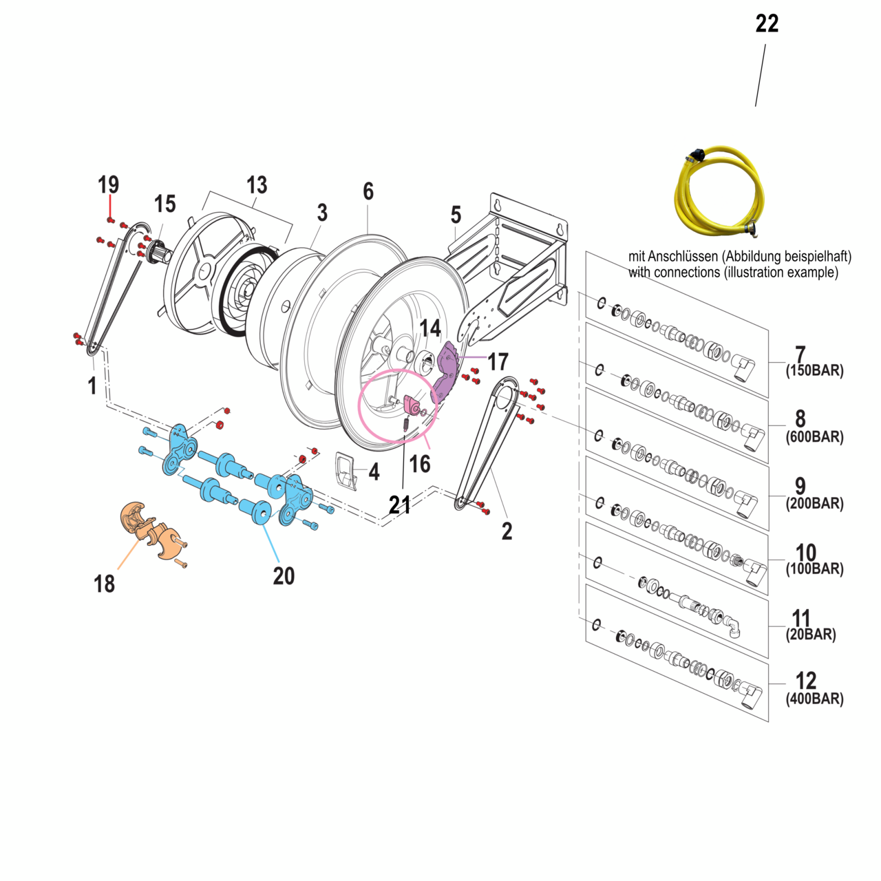 Nos enrouleurs de tuyau avec ressort de rappel sont spécialement conçus pour une utilisation professionnelle et industrielle. Des composants de haute qualité et une large gamme d'accessoires permettent de les adapter à tous les domaines de travail et à toutes les applications. Avec une construction robuste et précise, ils offrent une solution durable et fiable pour de multiples exigences.