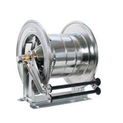 Boîtier en acier inoxydable - Rappel par ressort et blocage du tuyau Capacité du tuyau: 15 m - 1" (34 mm Ø ext.), 20 m 3/4" (25 mm Ø ext.)