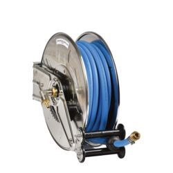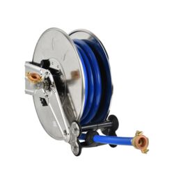 Boîtier en acier inoxydable - Rappel par ressort et blocage du tuyau - Tuyau haute pression noir