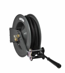 Boîtier en acier laqué - Rappel par ressort et blocage du tuyau - Tuyau haute pression noir