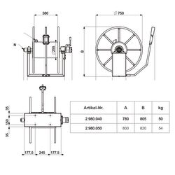 Capacité du tuyau max. 40 m - 38 mm Ø int. Moteur électrique 400 V AC - Roue libre à réglage manuel