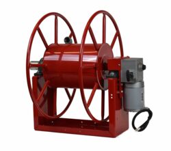 Capacité du tuyau max. 40 m - 38 mm Ø int. Moteur électrique 24 V DC - Roue libre à réglage manuel
