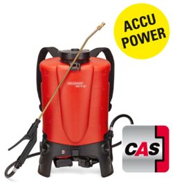 Pulvérisateur à dos sans fil pour applications herbicides et phytosanitaires avec réservoir de 15 l, pompe à membrane max. 10 bar - 4 l/min., surveillance de la pression à commande électronique, agitateur commutable, batterie Li-ion CAS, fabricant du chargeur : Birchmeier.