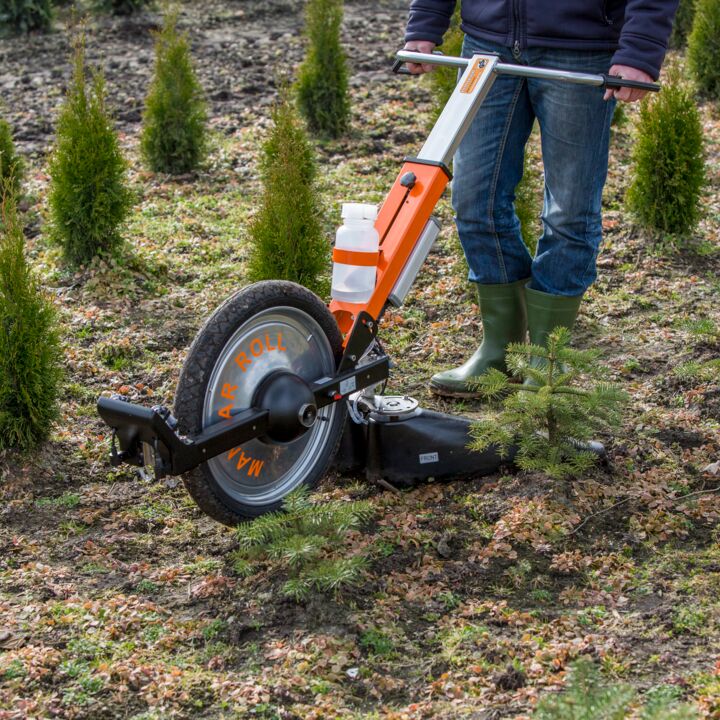 Les modèles MANKAR-Roll disposent d'écrans de pulvérisation flexibles innovants et d'un contrôle électronique des buses et de la batterie. Un contrôle de débit bien visible est également disponible. La buse rotative à segments brevetée et une pompe entraînée par roue garantissent, comme sur les modèles précédents MANKAR-P et -GP, un dosage d'herbicide précis et économique en fonction de la distance. La roue étroite de 53 cm de diamètre est également très bien adaptée aux terrains accidentés et permet à l'appareil de rester petit et maniable.