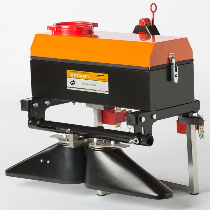 Le dosage est effectué par une pompe à entraînement électrique et peut être activé ou désactivé par simple pression sur un bouton. Ainsi, la pulvérisation peut être déclenchée de manière ciblée sur des parties du trajet si, en cas d'enherbement irrégulier, seules des parties de la surface doivent être traitées.