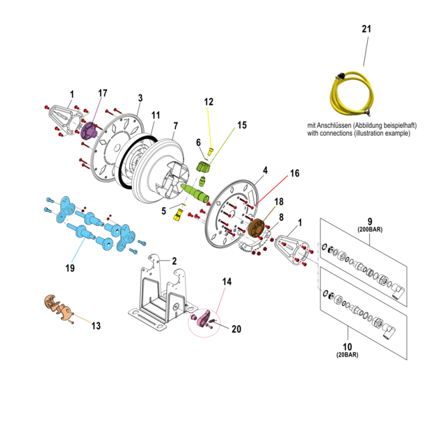 • Raccordements : Entrée (joint tournant) : Raccord rapide MS, compatible avec le système Geka, Sortie (tuyau) : Raccord rapide MS, compatible système Geka